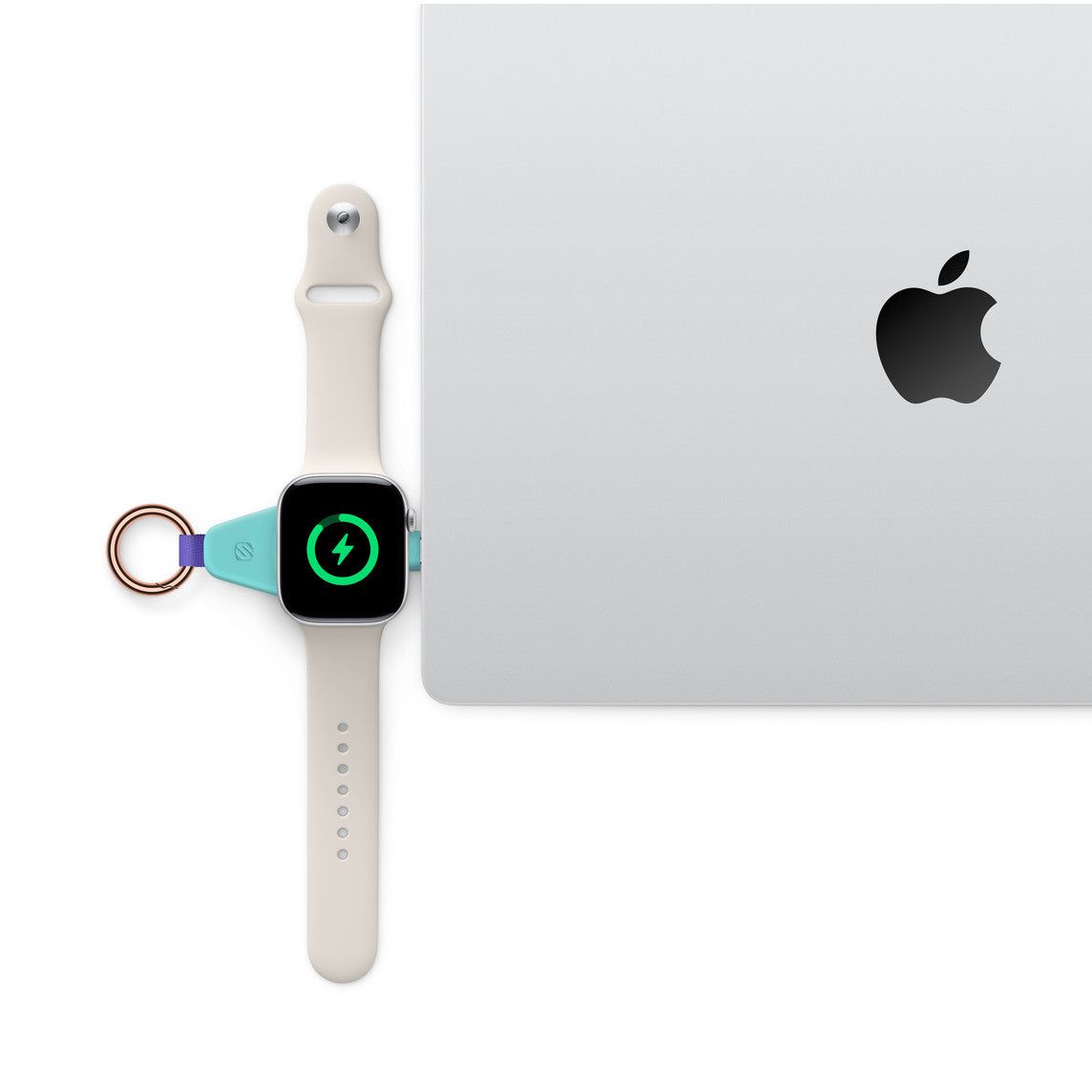Apple Watch Series 3/4/5/6/7/8/9 Magnetic Fast Charger With USB-C Connector is a compact and convenient MFi-certified keychain designed to keep your Watch charged and ready, wherever you go. Simply hold the magnetic module to the back of your Watch and feel the magnets snap it into perfect alignment for fast charging.